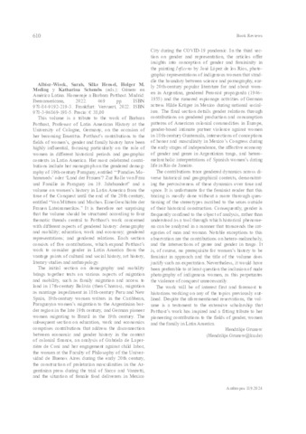 Albiez-Wieck, Sarah ; Hensel, Silke ; Meding Holger M. ; Schembs, Katharina (Hrsg.): Género en América Latina : Homenaje a Barbara Potthast. Frankfurt, 2022.