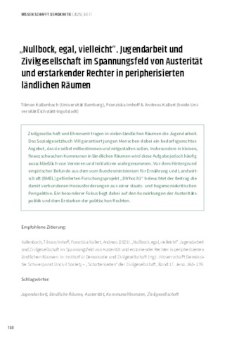 | Schlagwörter: | Jugendarbeit; ländliche Räume; Austerität; Kommunalfinanzen; Zivilgesellschaft |