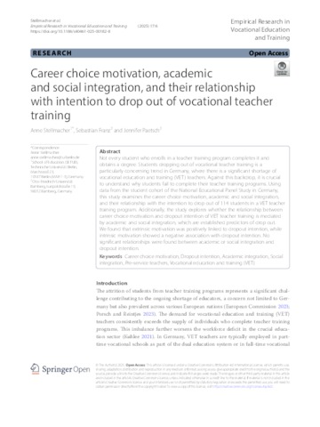 Career choice motivation, academic and social integration, and their relationship with intention to drop out of vocational teacher training.