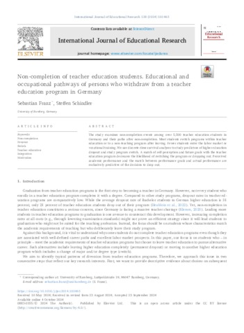 Non-completion of teacher education students : Educational and occupational pathways of persons who withdraw from a teacher education program in Germany.