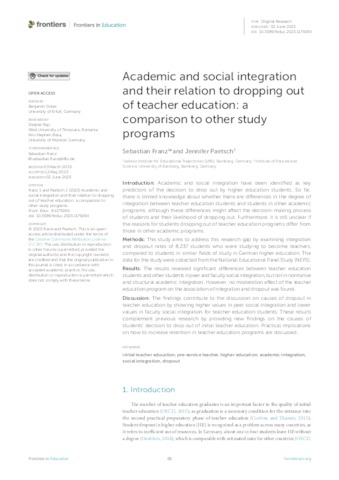 Academic and social integration and their relation to dropping out of teacher education : a comparison to other study programs.