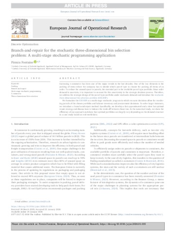 Branch-and-repair for the stochastic three-dimensional bin selection problem : A multi-stage stochastic programming application.