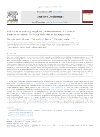 Influences of training length on the effectiveness of a number board intervention for 6-year-old German kindergartners.