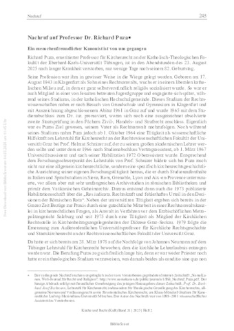 Nachruf auf Professor Dr. Richard Puza : Ein menschenfreundlicher Kanonist ist von uns gegangen.