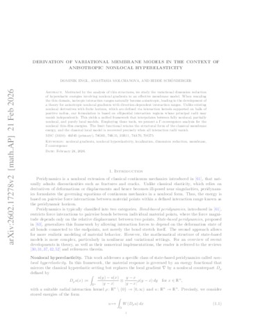 | Schlagwörter: | nonlocal gradients, nonlocal hyperelasticity, localization, dimension reduction, membrane,