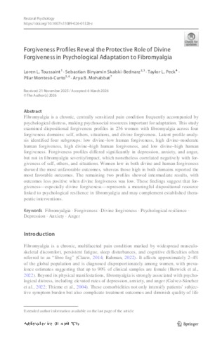Forgiveness Profiles Reveal the Protective Role of Divine Forgiveness in Psychological Adaptation to Fibromyalgia.