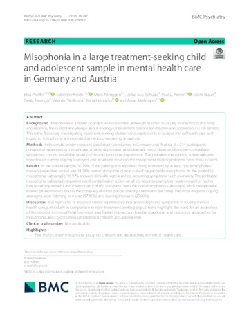 Misophonia in a large treatment-seeking child and adolescent sample in mental health care in Germany and Austria.