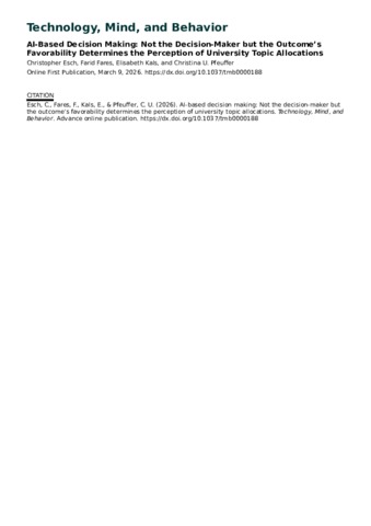 AI-based decision making : Not the decision-maker but the outcome’s favorability determines the perception of university topic allocations.
