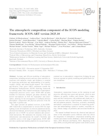 Accurate and efficient modeling of atmospheric composition, including aerosols and trace gases and their interactions with radiation, clouds, and dynamics is essential for improving predictions and understanding of air quality, weather, climate, and related health impacts. The Aerosols and Reactive Trace gases (ART) component extends the ICOsahedral Nonhydrostatic (ICON) modeling framework by enabling online, fully coupled simulations of atmospheric composition processes across scales. ICON-ART includes modules for emissions, transport, gas-phase chemistry, and aerosol microphysics in both the troposphere and stratosphere, allowing for the investigation of feedbacks between atmospheric composition and physical processes from the large-eddy to global scale.